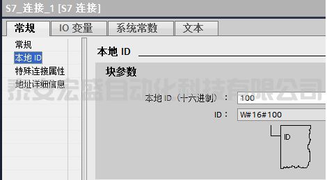在本地ID中:显示通讯连接的ID 号,这里ID=W#16#100。