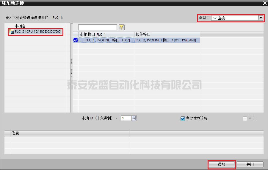 (2) 然后在“添加新连接”窗口中,选择“PLC_2[CPU1215C DC/DC/DC]”,然后点击“添加”建立 S7 连接,如图 8 所示。