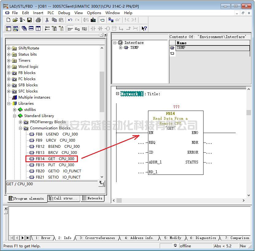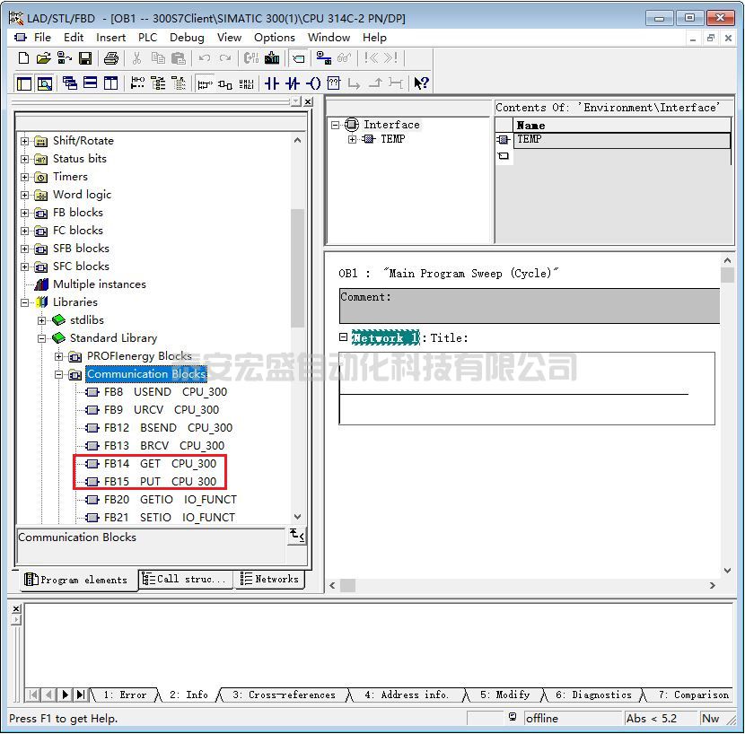 功能块 FB15 PUT 的插入方法和 FB14 GET 相同。