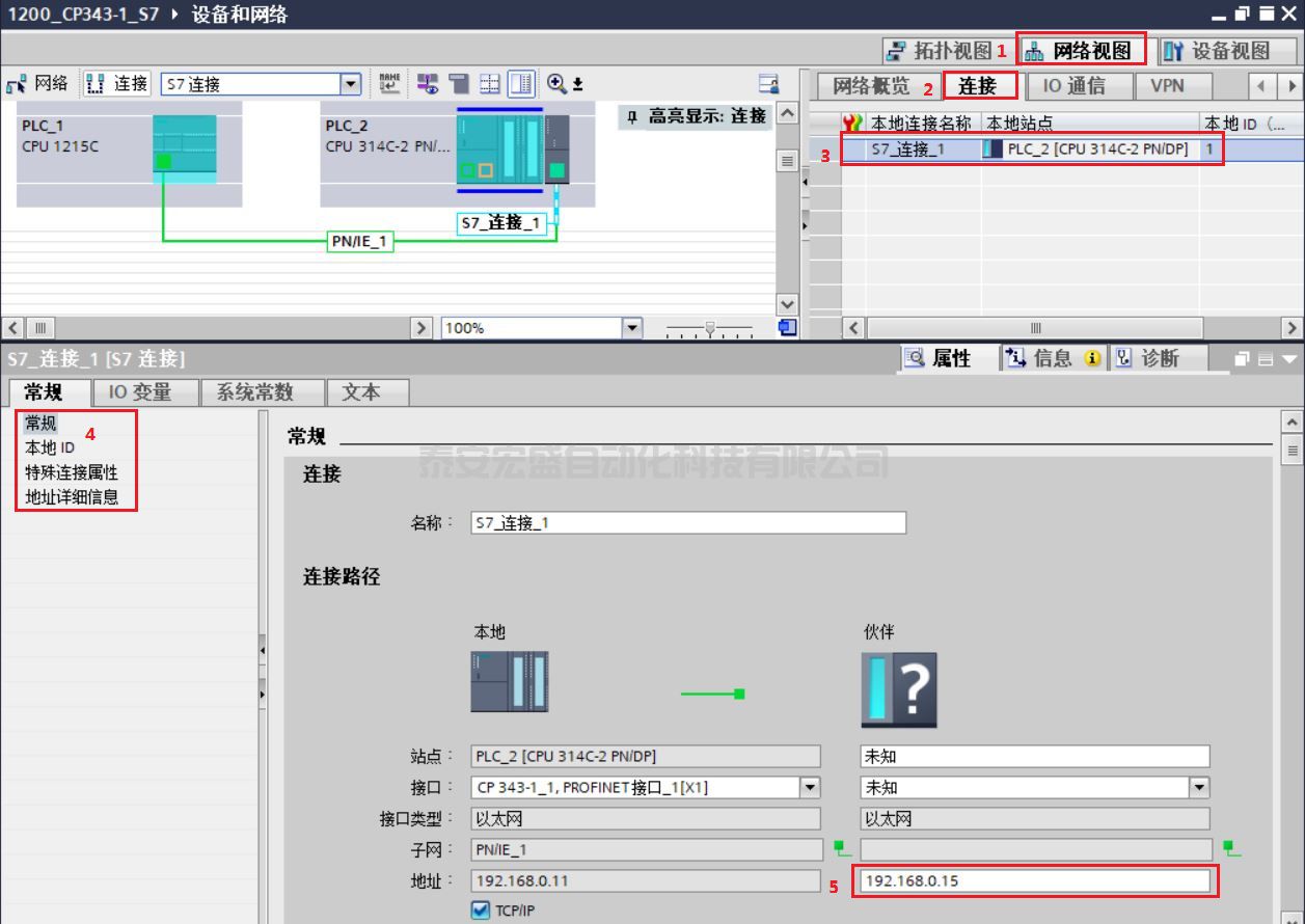 6. 创建 CPU 的逻辑网络连接(仅当S7-1200 和 S7-300 在同一 TIA 项目)