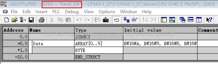 | ADDR_1 | :=P#DB4.DBX 0.0 BYTE 10 | //发送到通信伙伴数据区的地址 |