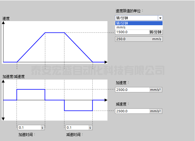 加减速度的斜坡时间设置为0.1,可以时伺服电机快速启动和停止。此处是设置伺服电机的启动和停止时间。