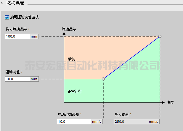 当运行伺服电机提示超出范围错误时,可以通过修改“最大随动误差”和“随动误差”参数来解决错误。