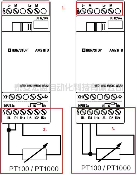 之前老版本提供LOGO!AM2 PT100模块,用于连接PT100温度传感器,接线方法与AM2 RTD一致,下文中以AM2RTD模块为例介绍。