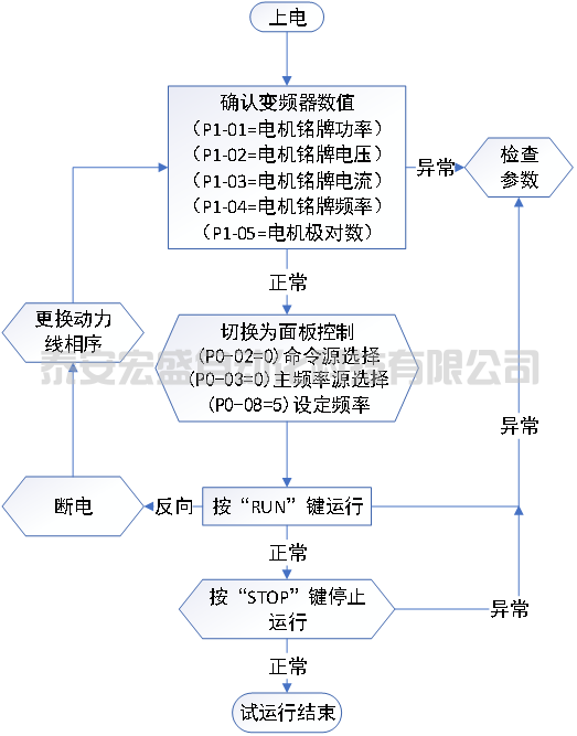 输入电源与变频器的额定输入电压相匹配,输入电源的电缆连接到R、S、T上并已按照规范拧紧;