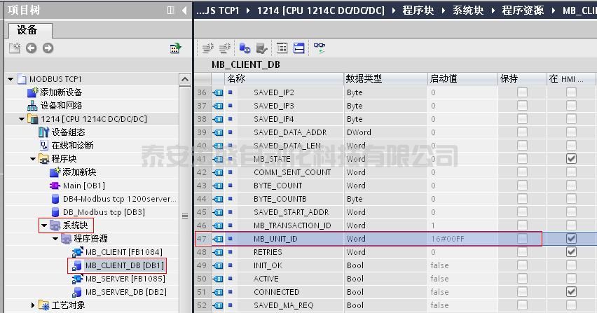 图7. 客户机中“MB_CLIENT”的背景数据块中的STAT变量“MB_UNIT_ID”