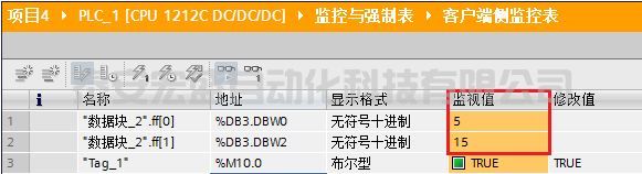 S7-1200 MODBUS TCP 客户端侧,给 MB_CLIENT 指令块中 REQ 引脚一个上升沿,监控数据读取成功。如图9所示。